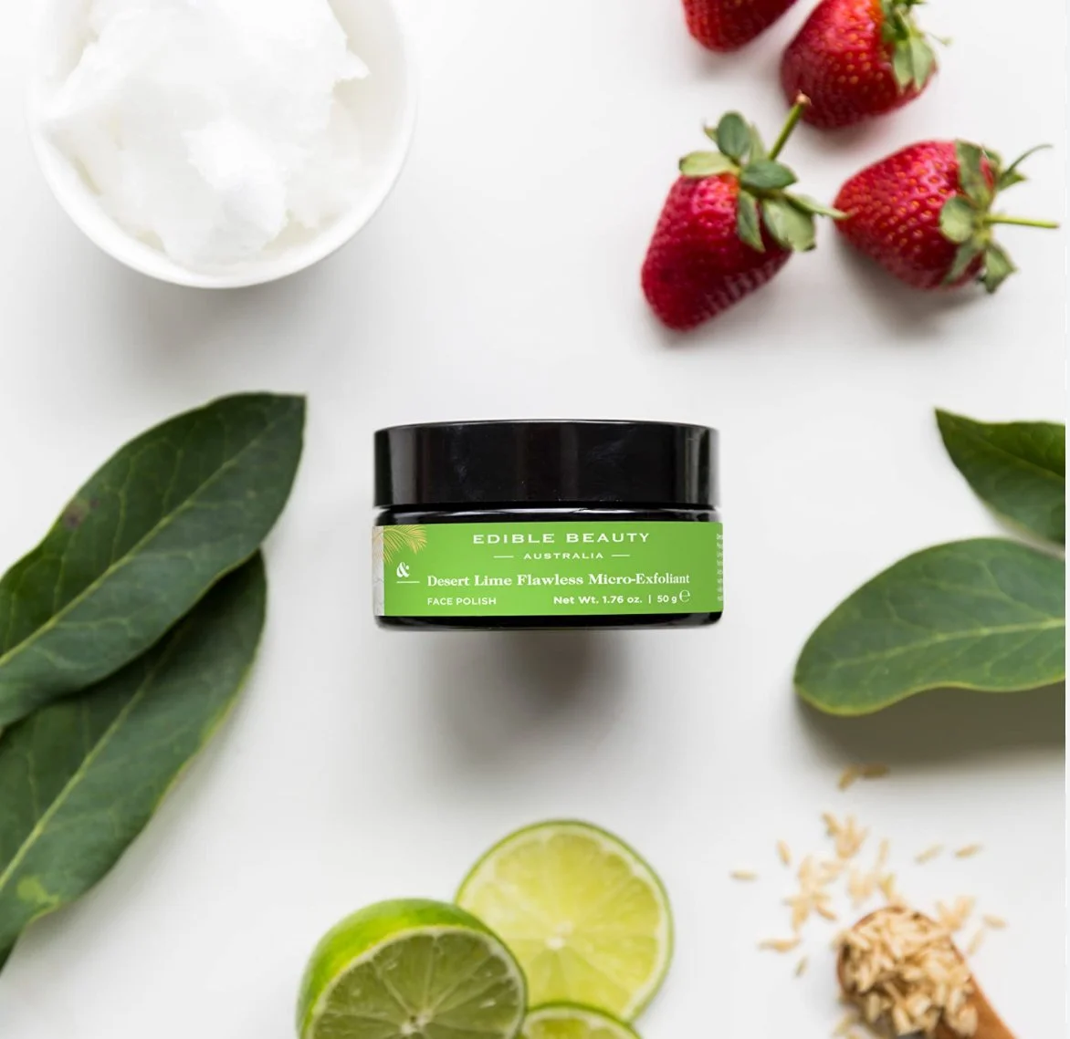 It smells almost good enough to eat, though this delicious combination of ingredients will feed your skin what it needs. Natural rice grains help scrub and lift away impurities while desert lime and strawberry AHAs boost skin radiance. The finishing touch is the blend of cold-pressed organic oils that keep skin beautifully balanced.